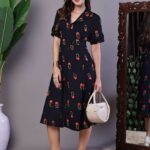 Be the first to review “Women’s Elegant Indigo & Orange Floral Block Print Cotton Shirt Dress”